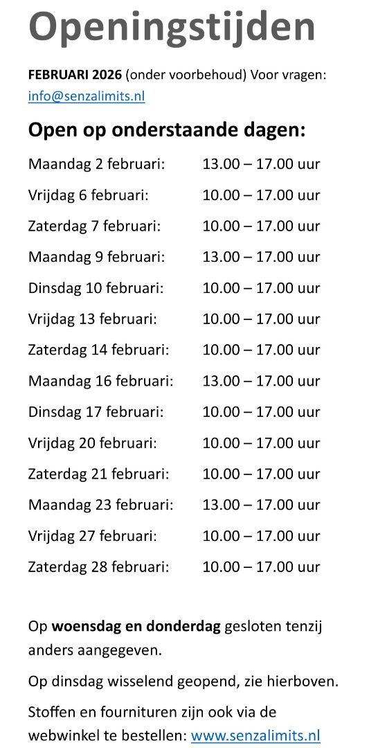Volg de pagina's van Senza Limits op instagram, facebookpagina en besloten facebookgroep voor de laatste nieuwtjes of kom langs in de winkel aan de Noorderstraat in Sappemeer.