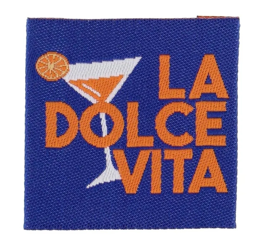 De geweven labels zijn verkrijgbaar met verschillende vrolijke en populaire quotes.