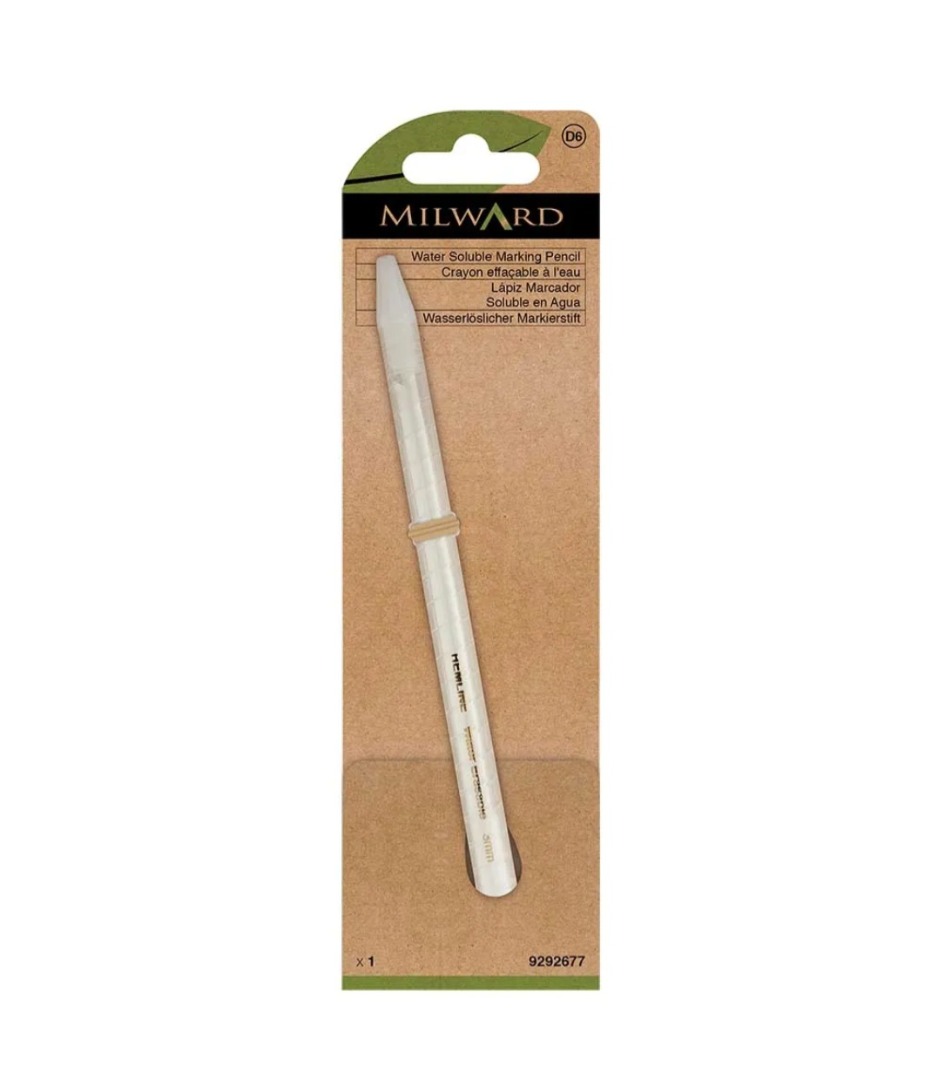 Een krijtpotlood is een onmisbaar accessoire voor het aftekenen van patroonlijnen en het markeren van bijvoorbeeld knoopsgaten, zakken en plooien. Het potlood van Milward is een handig alternatief voor kleermakerskrijt. Het is erg makkelijk en nauwkeurig in gebruik en minder kwetsbaar dan kleermakerskrijt, waardoor u het potlood zonder problemen kunt opbergen en meenemen. Door aan het potlood te draaien, komt de punt tevoorschijn. Het potlood is geschikt voor gebruik op de meeste gekleurde stoffen.