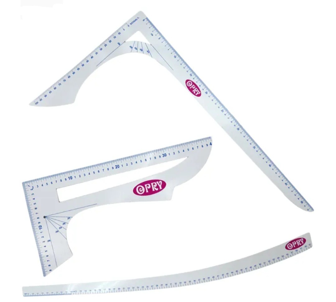 Deze 3-delige set met kleermakerslinialen is perfect voor alle hoeken en vormen! Het is een unieke set waarmee veelvoorkomende tekenwensen op het gebied van het maken van kleding getekend kunnen worden.