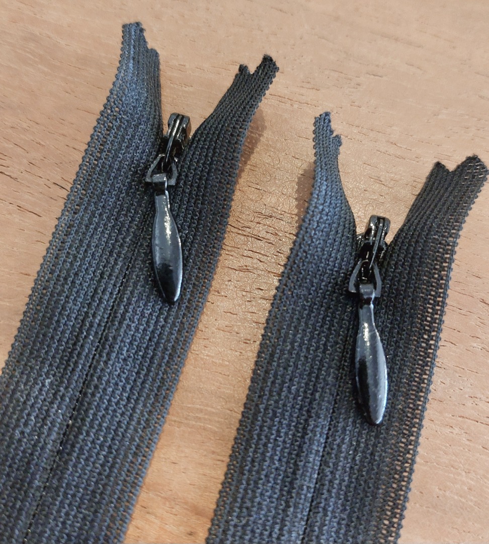 Niet deelbare blinde rits van 4mm breed en lengte 12 en 14 cm