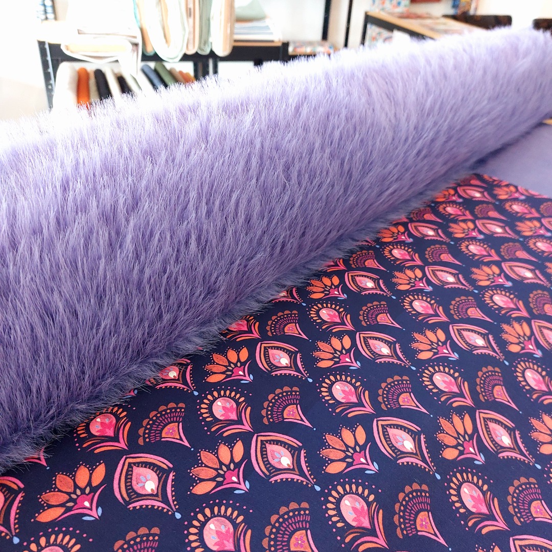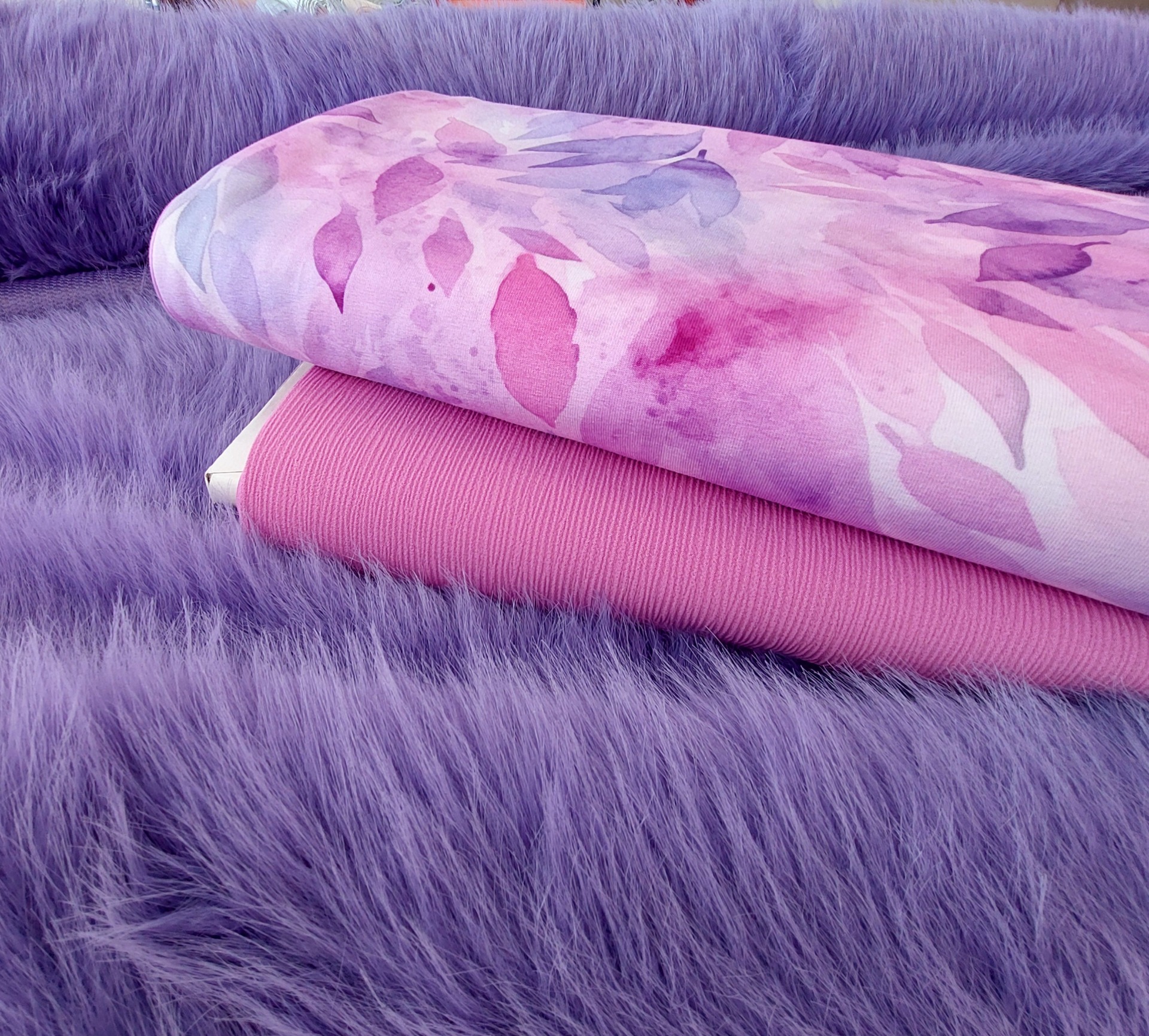 De vegan langharige bontstof is een gewaagde keuze binnen de wintermode, die een levendige lila tint combineert met een zachte en omhullende textuur. Perfect voor opvallende jassen, bohemian-stijl kledingstukken en accessoires met karakter, biedt deze stof een uniek gevoel van warmte.