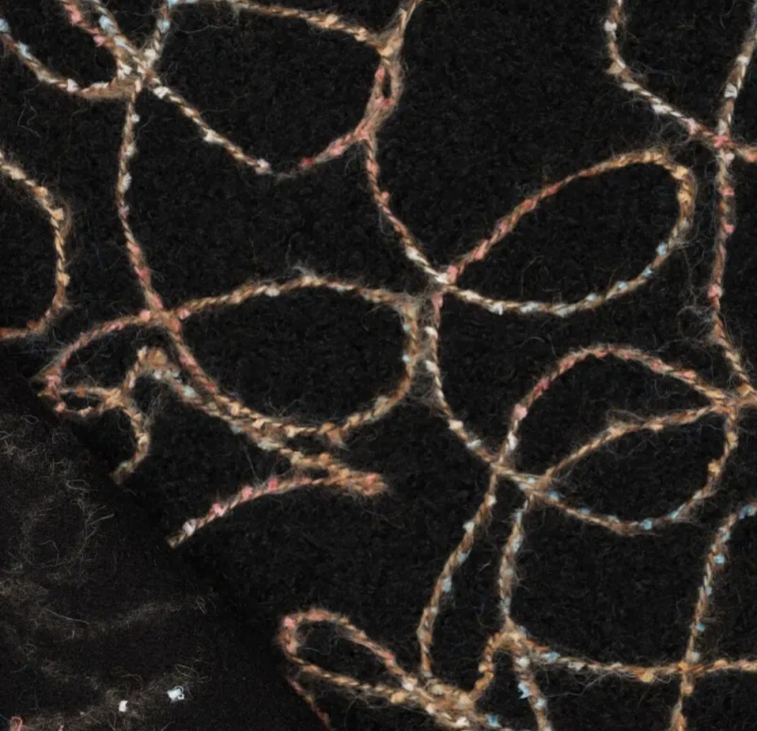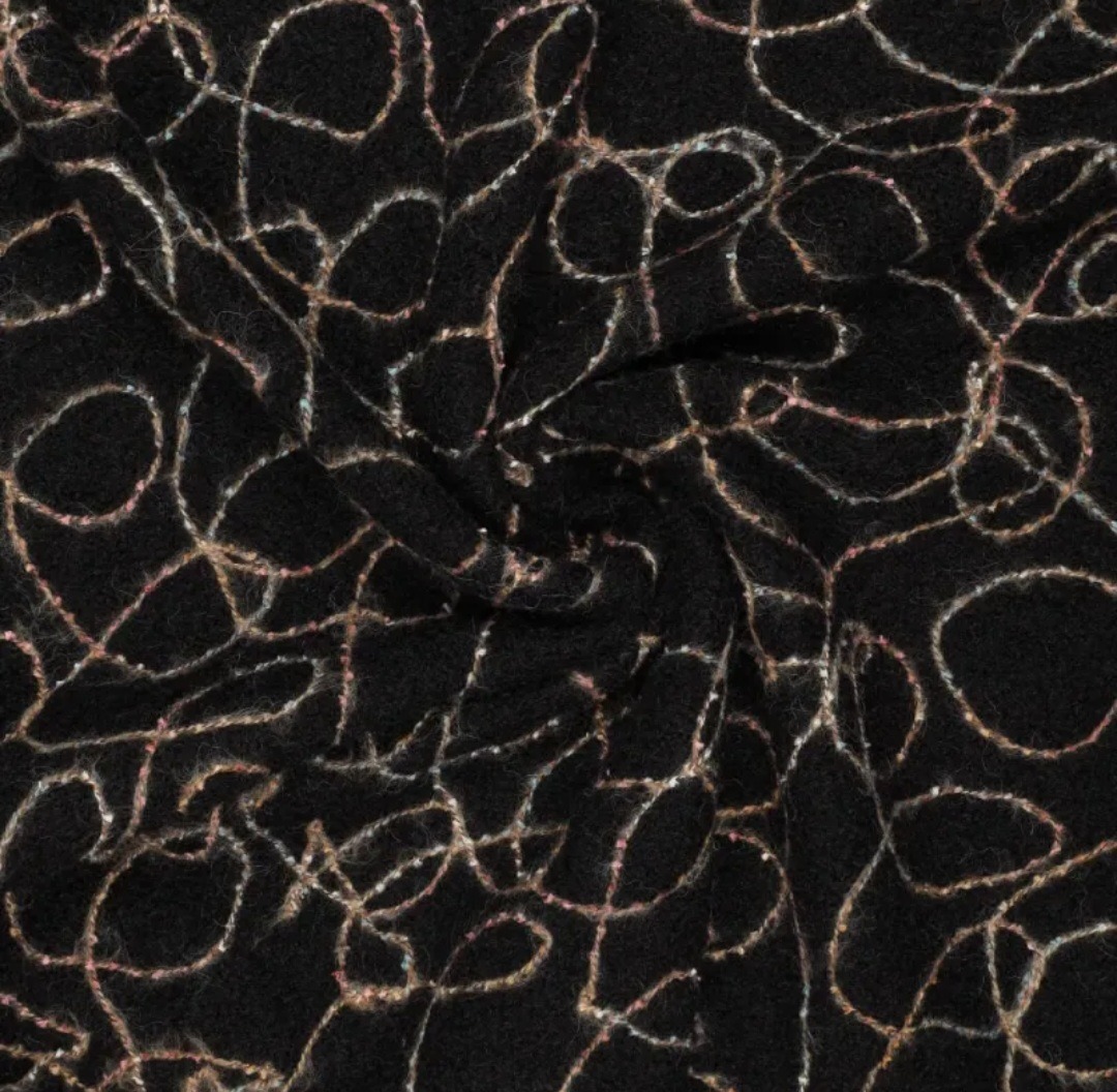 Een erg mooie stof voor een jas met gekleurde borduursels