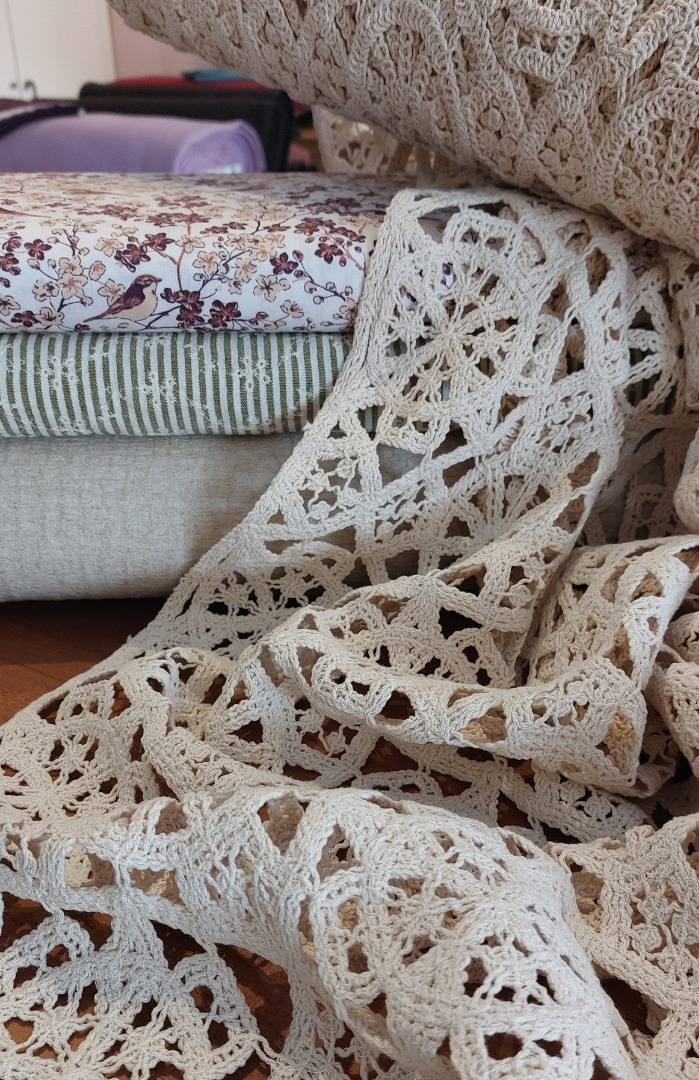 Geef je creaties een bohemien en romantische uitstraling met Crochet Circles, een crèmekleurige gehaakte kantstof met een fijn verweven cirkelpatroon. Ideaal voor het maken van Ibiza-jurken, blouses, vesten en zomeraccessoires. De open structuur geeft elke look frisheid en elegantie.