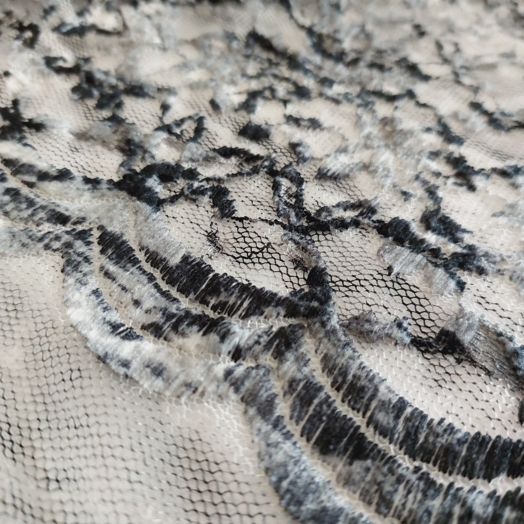 Kant bloemen grijs/zwart