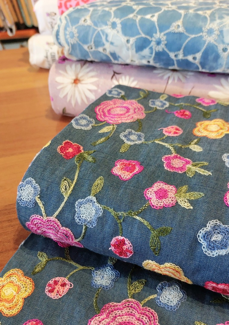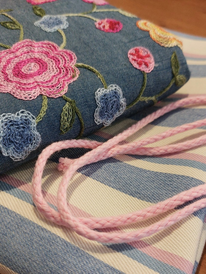 Een denim met geborduurde bloemen