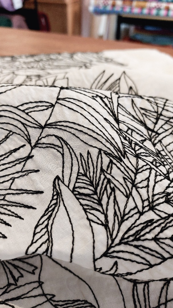 Geef je creaties een klassieke en elegante uitstraling met Embroidery Black & White, een 100% katoenen voile stof met een verfijnd zwart bloemenborduursel op een witte achtergrond. Dankzij de lichtheid en zachtheid is de stof perfect voor blouses, jurken, rokken en sjaals en voegt ze frisheid en verfijning toe aan elke look.