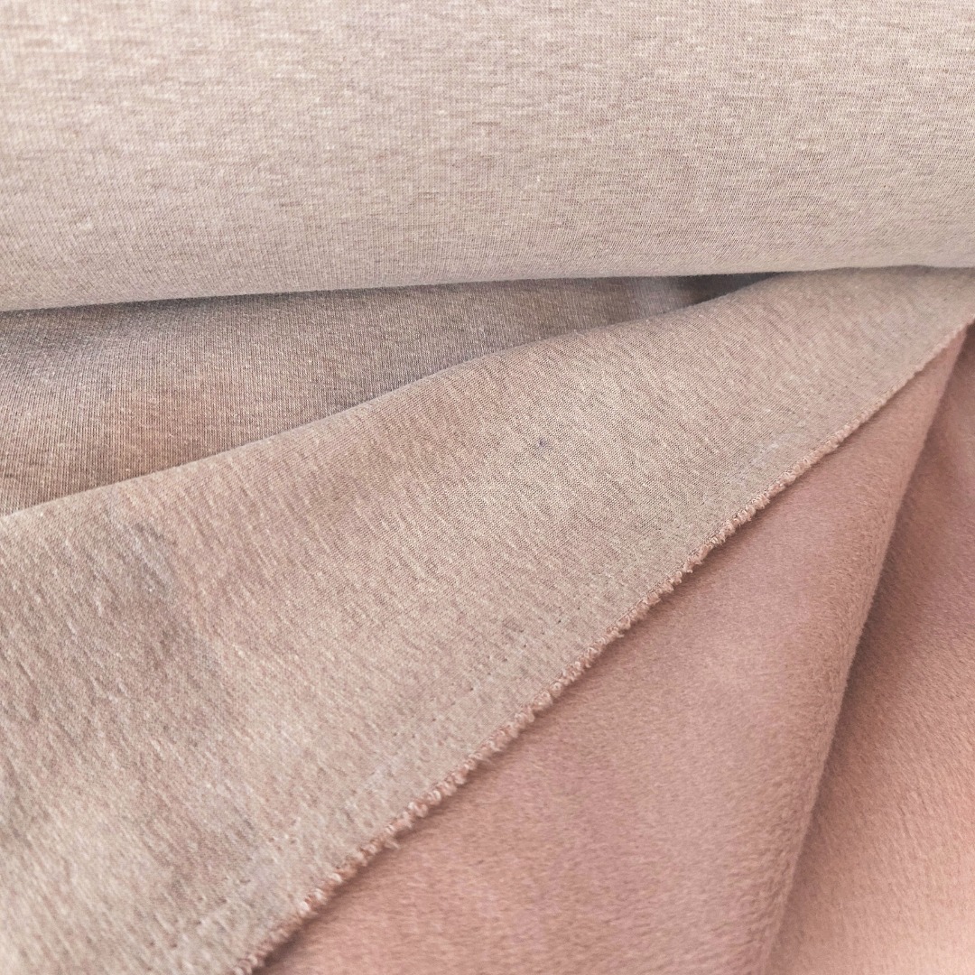 Alpenfleece ziet er van buiten hetzelfde uit als sweat/jogging stof. Deze stof bestaat uit twee lagen in plaats van een