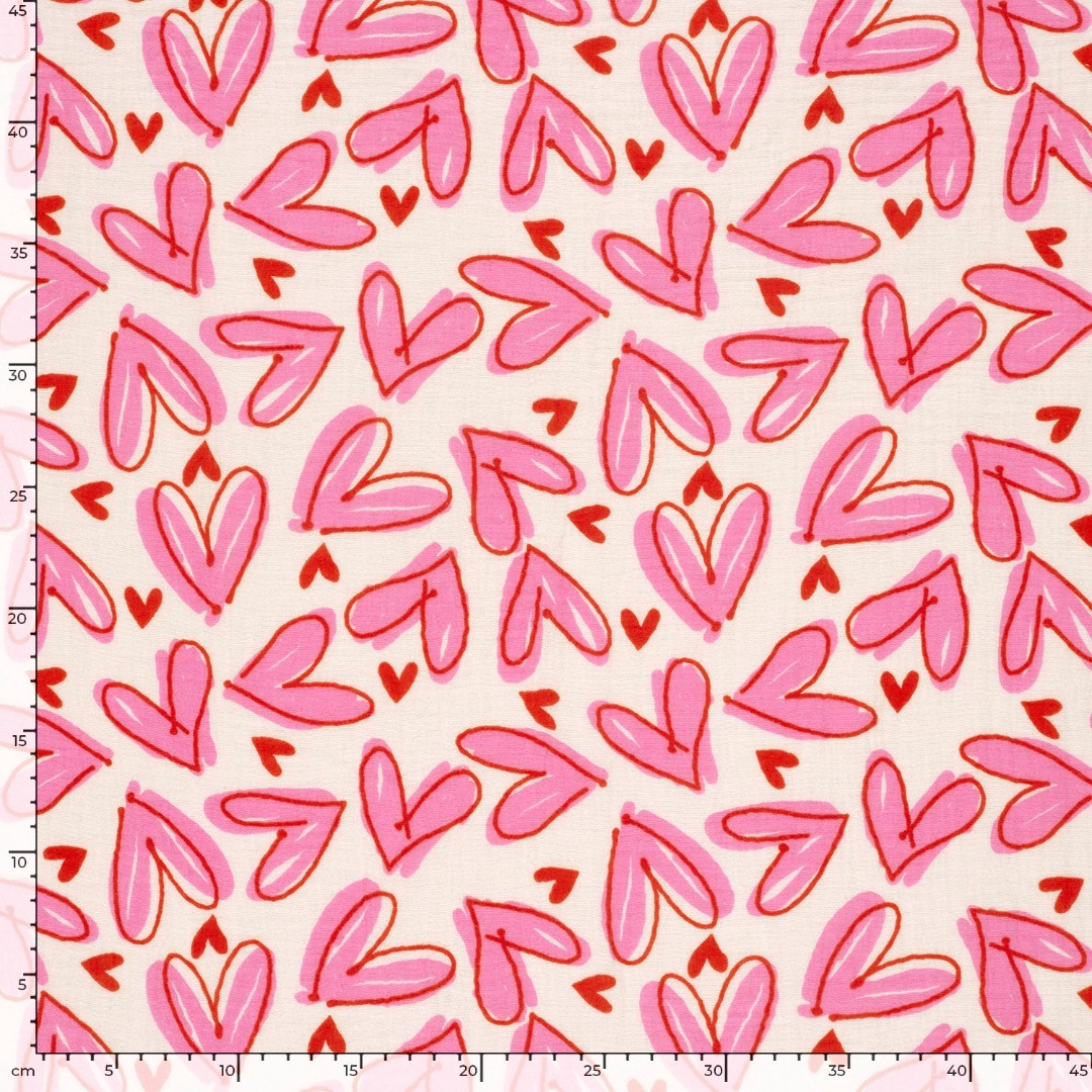 Kleur: rood/roze op gebroken witte ondergrond