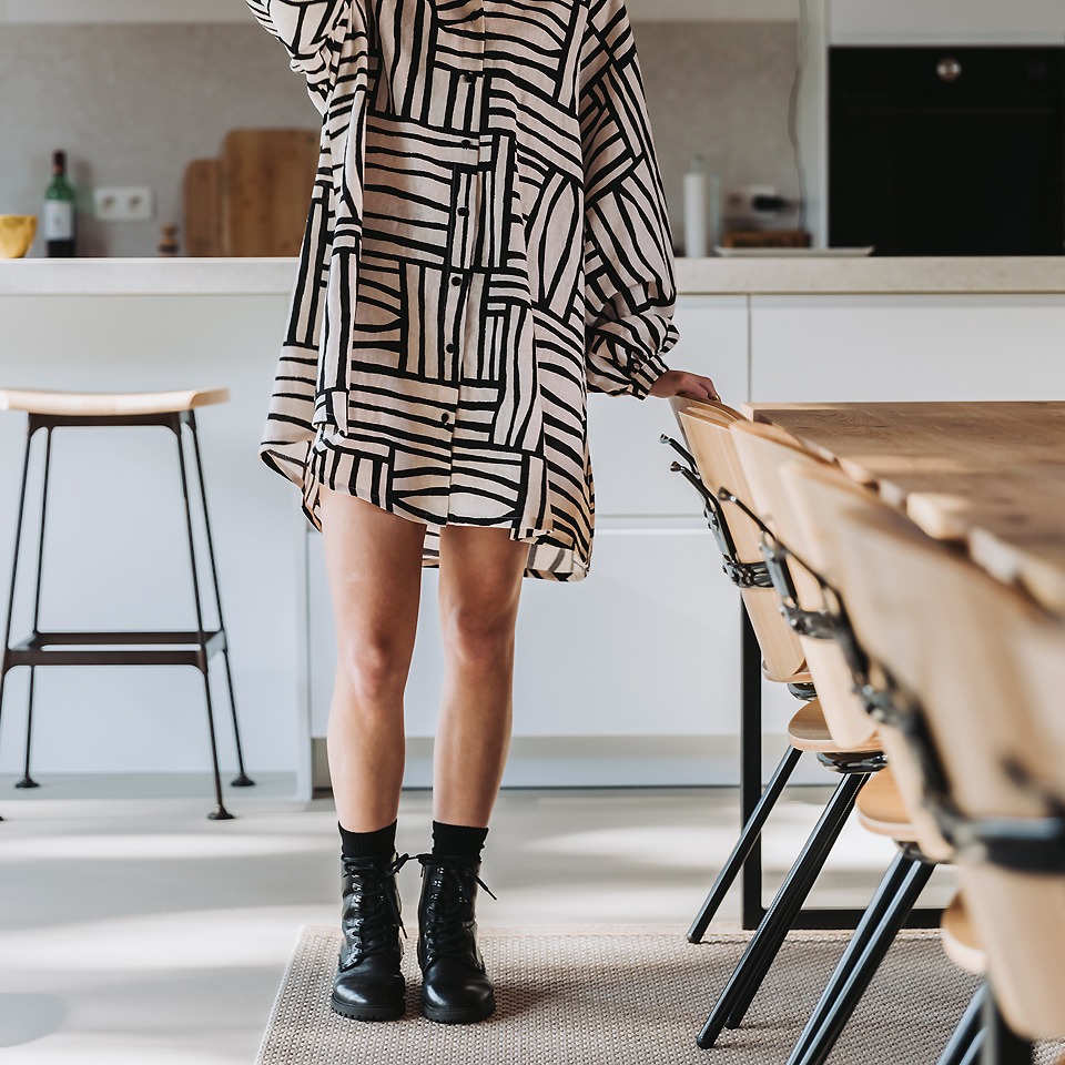 Door de viscose kreukt het ook iets minder, maar het behoudt nog steeds wel de linnen-look.