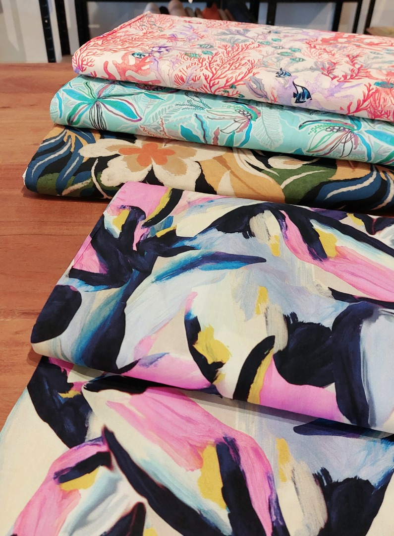 Een viscose met een levendig botanisch design – ideaal voor lichte, soepelvallende kledingstukken. Dankzij de zachte en vloeiende touch is hij perfect voor jurken, rokken, blouses of comfortabele broeken met beweging. Een frisse, veelzijdige keuze voor je zomerse naaiprojecten.